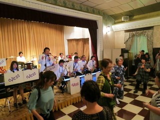 王朝の間はすでに押すな押すなの大盛況で、ビッグバンドVESTの演奏に合わせてダンスの輪ができていました。