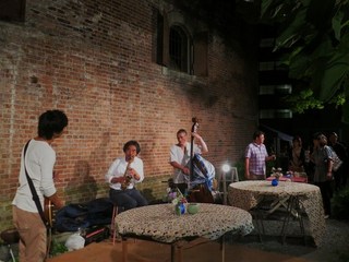 店をめぐる途中で音に誘われて立ち止まったり、一杯飲みながら気軽に聴いたり。野外ならではの楽しみです。