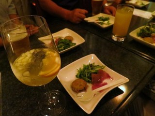 いい気分で歩きまわって、護国神社坂のBar シェアーズ hishiiへ。生ハムとズッキーニのフライ+ホワイトサングリア。