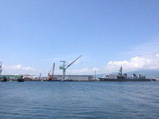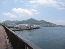 赤と白のゴライアスクレーンがなくなった現在の函館どつく  跡地付近からは港、函館山、街並みが見渡せる