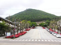 旧ロシア領事館、山上大神宮などがあり、函館港を見おろす景色が気持ちいい。男の子が自転車に乗って勢いよく下っていく、急な坂道。