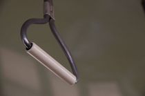 (左)湯の川温泉街への足として利用する市電で見かける、シンプルで機能美あふれる吊り手(市電530号)
