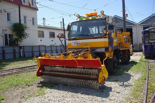現在では、軌道上にいる電車を追い越して除雪を続けることが出来る「ササラトラック」が主力になっています。