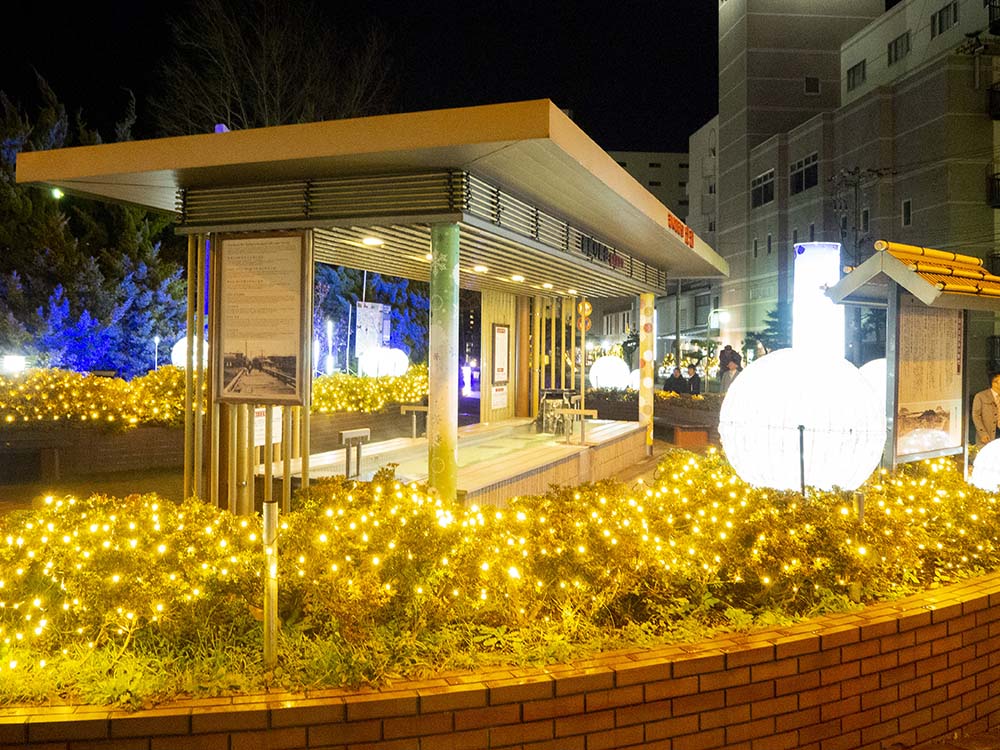 函館駅前広場と、函館駅につながる国道が多彩な光の演出で幻想的な雰囲気に。会期も11月30日から3月30日までのロングラン開催。