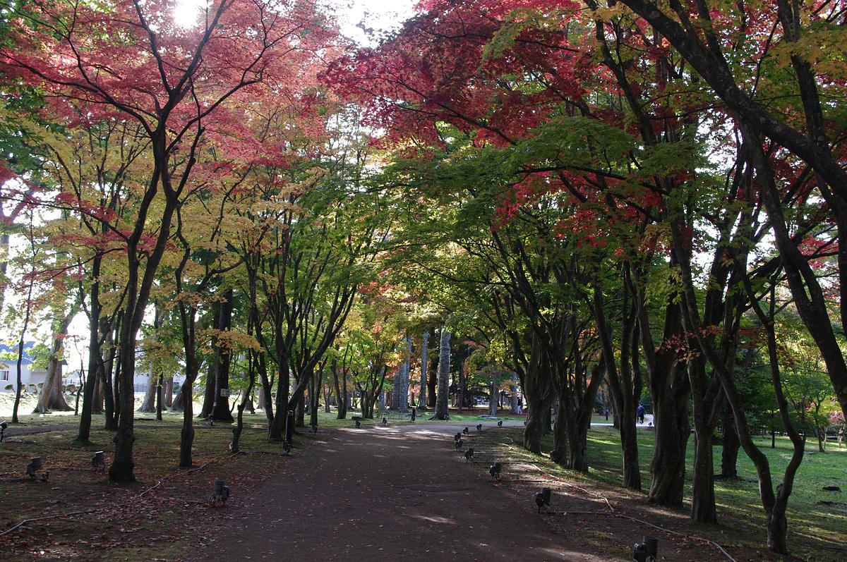 正面から入って右手に歩いていくと、大きなカエデの木の間を進む、森のような並木道。