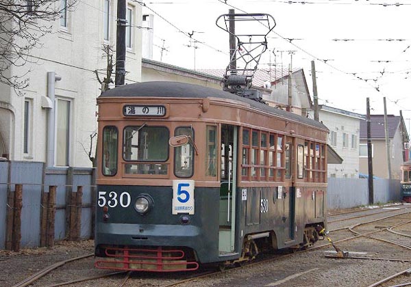 上半部マンチュアサンドライト、下半部マジュルカブルーという渋い旧塗装を纏った昭和25年製の530号。鉄道ファンの皆さんが市電を借り切る際に指名するほか、映画やドラマの撮影にも引っ張りだこ。営業運転に出る率は非常に少ないですが、冬場の早朝~日中に運行されるパターンが多いようです。