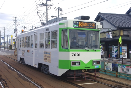 2007年から運行を開始した、11年ぶりに導入された新車。入り口から出口まで段差のないバリアフリー仕様の完全低床車(冷房付き)であり、函館市電初の2連接車。