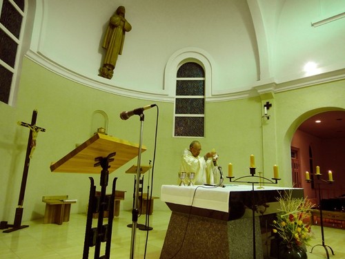ミサの中ほど、祭壇ではパンとぶどう酒が祭壇に捧げられました。美しい金属製のカリス(聖杯)とパテナ(聖体皿)を前に、パンをキリストの体に、ぶどう酒をキリストの血にする祈りの言葉が唱えられます。