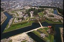 幕末の開港時に箱館の防備強化を図るため、元治元(1864)年に造られた日本最初の洋式築造の城郭。設計は、学問所「諸術調所」教授の武田斐三郎。