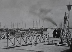 日和坂下の桟橋は、明治4年開拓使により設けられた。鉄道連絡船の桟橋ができる同41年までは、船客が港内に碇泊した船舶からはしけに乗り換えて上陸する桟橋で、文字通り「北海道第一歩の地」であった。函館駅近くの鉄道桟橋ができて以降は使われなくなり、現在は旧桟橋として整備され、ベイエリアの夜景を楽しめる絶好のスポットになっている。