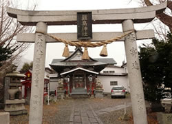 豊漁、海上安全を祈願する神社で、享和元(1801)年、弁天の沿岸(現在の函館どつく入口付近)に島を造成し移転した。文化9(1812)年に一度移転後、安政4(1857)年の弁天砲台築造にあたって現在地に再度移された。現在は厳島神社と称し、市電函館どつく電停前に建つ。高龍寺や外国人墓地に向かう坂(魚見坂)の起点にある。