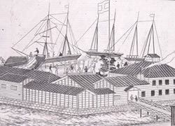 島野造船所は西浜町の海岸900坪を埋め立て、明治8年から営業を開始した。明治初期には、トムソン・辻と並び函館の3大造船所にも数えられた。現在は整備されてはこだてマリーナとなっている。隣接の幸町はその後埋め立てが進み、現在は西埠頭として自衛艦などが繋留されている。
