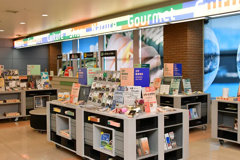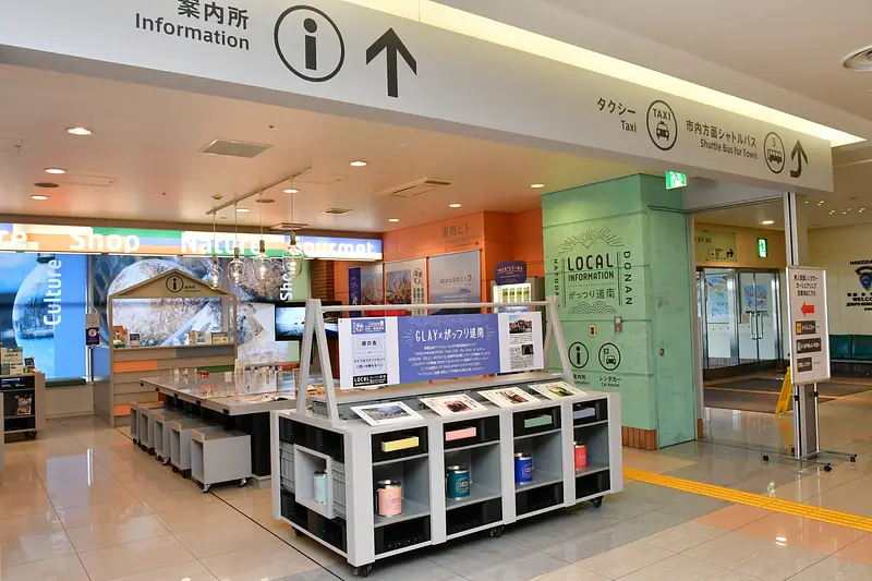 国内線ターミナルビル1階の到着ロビー正面にあるのが、函館空港と道南地域の総合案内所『LOCAL INFORMATION がっつり道南』。2022年3月に開業し、案内所スタッフのこだわりが随所に散りばめられた「函館 ローカルイチバ」がテーマの施設です。