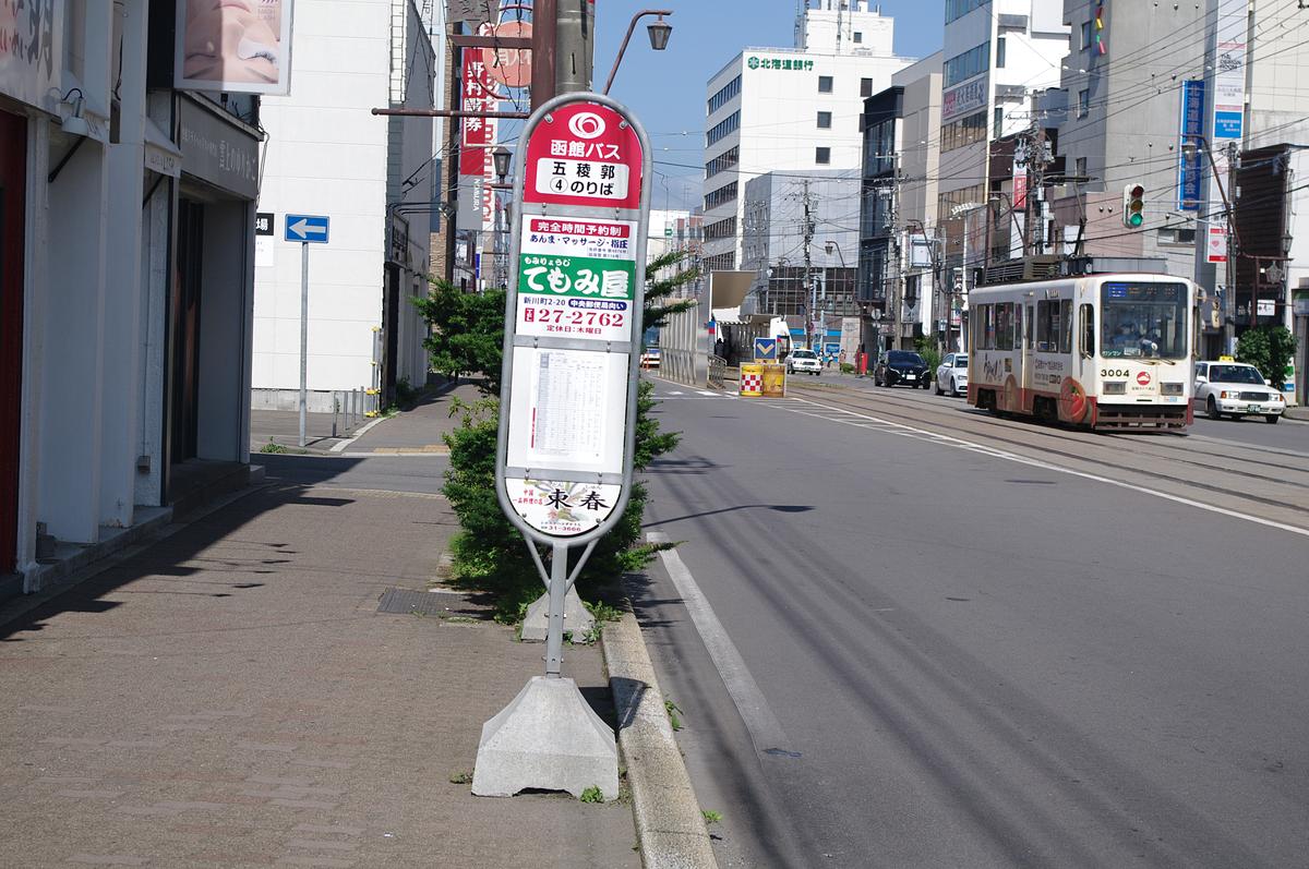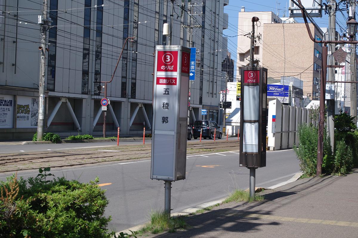 函館駅前やベイエリア、函館空港、湯の川から津軽海峡フェリーターミナルへ向かう際に乗り継ぎしやすいのは、五稜郭バス停です。
