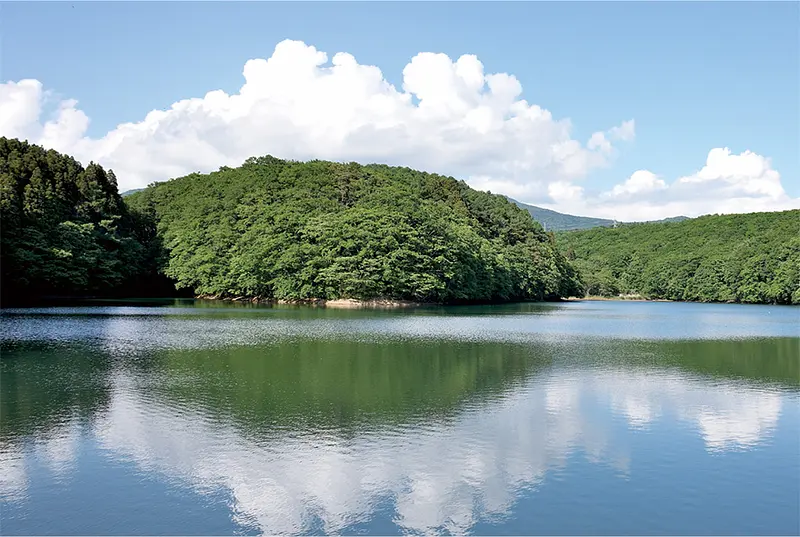 1960年に笹流ダムから約4km上流の亀田川本流をせき止めて建設された中野ダムを、さらに20m以上かさ上げし、治水機能を付加させて1984年に完成した重力式コンクリートダム。湖へは公園の脇の山道を車で登るとたどり着く。