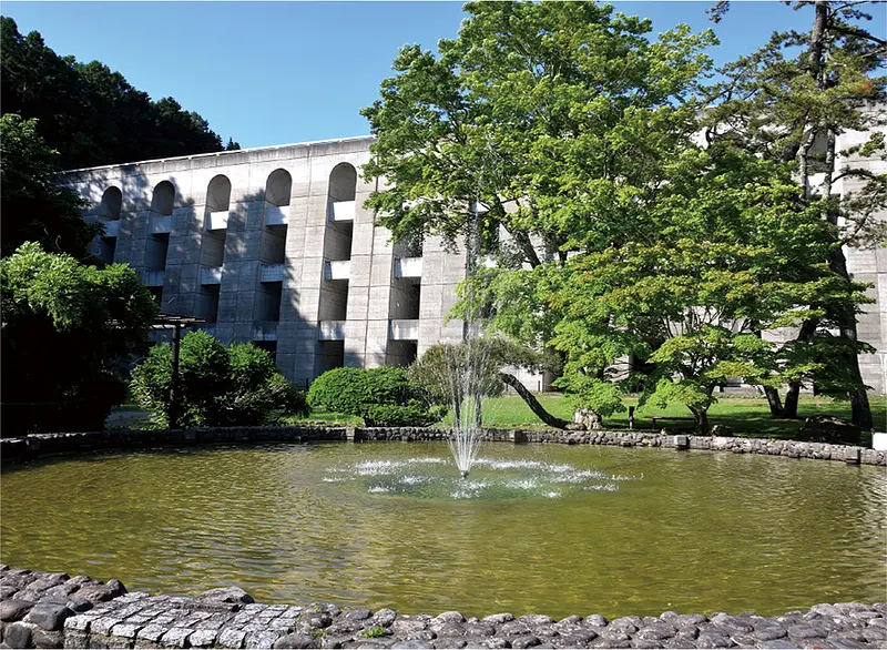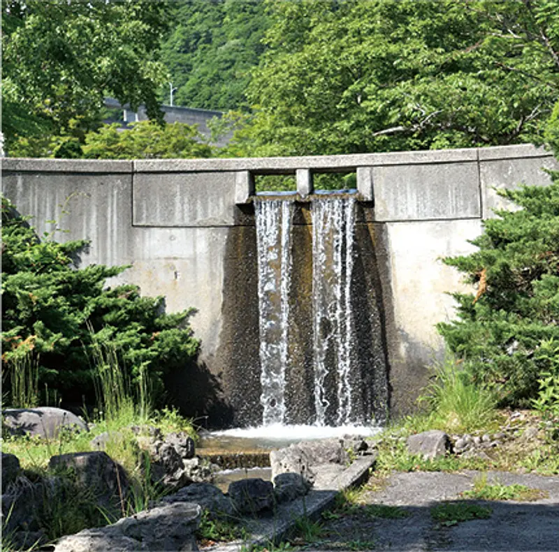 1923年に日本で最初に建設された、函館市民の水がめとして活躍しているバットレスダム。前庭広場は公園として整備されており、春は桜、夏の深緑、秋は紅葉が楽しめる。ダム近くに設置されている噴水は晴天時、虹ができることも。ダム両脇にある階段を上がると、貯水池一面の青と水面を縁取る木々とのコントラストがつくり出す絶景が広がる。