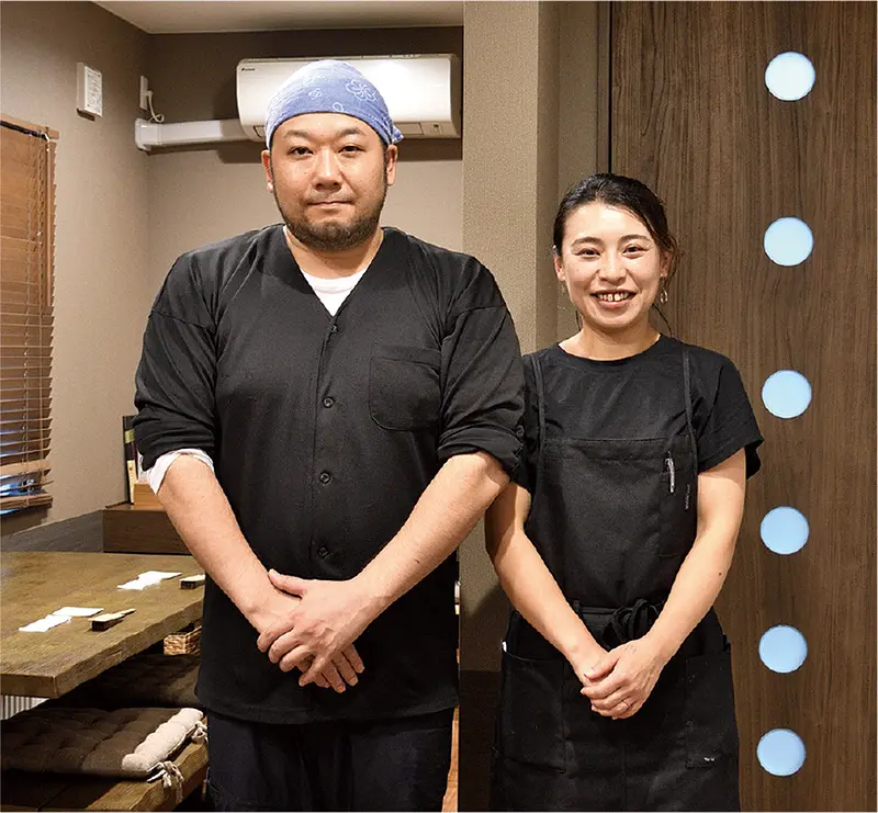 和食がベースの創作料理が味わえる隠れ家的一軒。靴を脱いで店内に入ると、札幌や大阪で経験を積んだ豊島隆平店主が厨房で腕を振るい、妻のあゆみさんが明るく出迎え、6人掛けのテーブルを中央に、カウンターや個室から談笑する声が聞こえてくる。