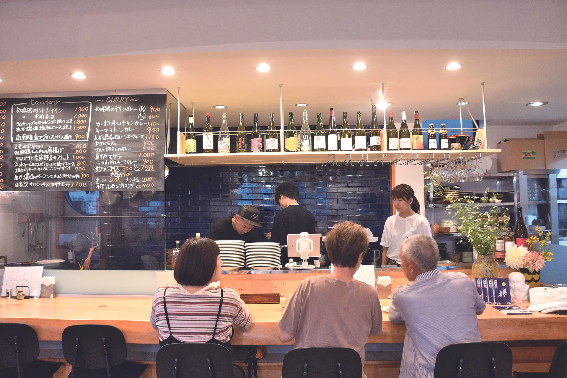 食欲をそそるガーリックの香りに誘われ、甘辛いタレがたっぷりと染みた手羽にかぶりつくと酒がぐいぐい進む「自家製ラー油と花山椒香る麻辣手羽」は店の定番。地元の採れたて野菜で作るかき揚げといった季節の気まぐれメニューをはじめ、手書きの品書きは日々内容が変わり、刺身は常に新たな味を楽しめるようその日仕入れた魚介に合わせ、ゆずこしょう和え、なめろう、ユッケと、さまざまな食べ方を用意している。日本の銘柄で揃えるウイスキーや季節で変わる日本酒など、多彩な酒を料理に合わせてゆっくりと堪能したい。