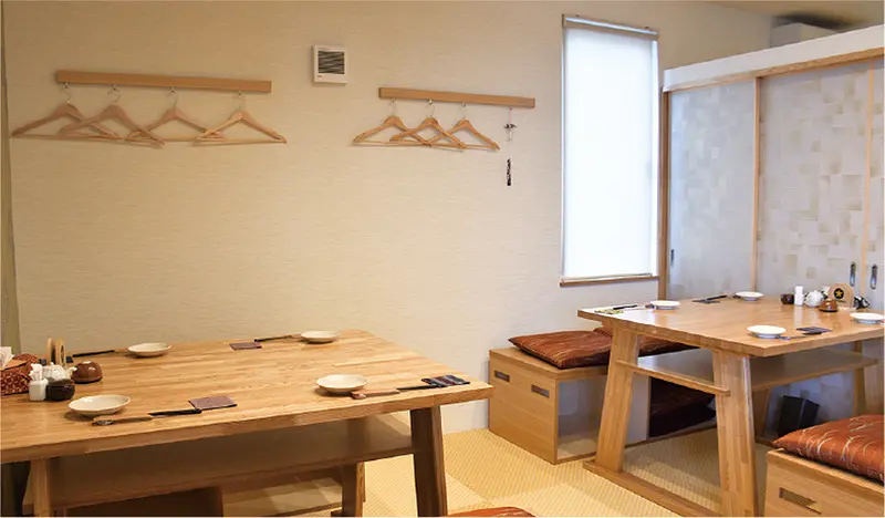 居酒屋料理や本格的な和食が味わえる店。畳敷きの小上がりにはテーブルと椅子を設置し、子供から年配客までくつろぎやすい空間が好評を集める。