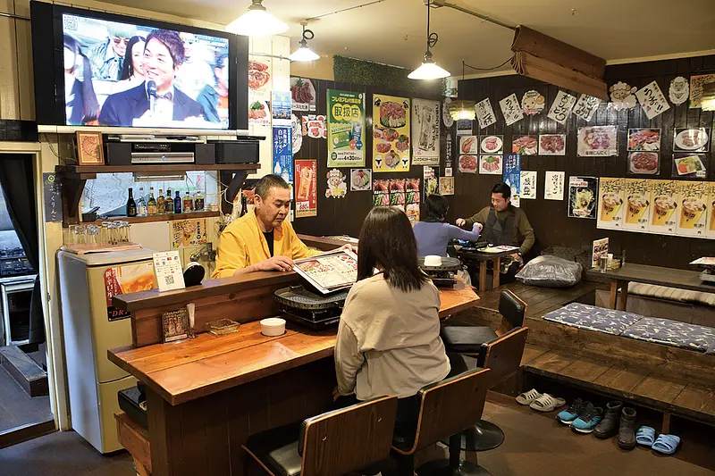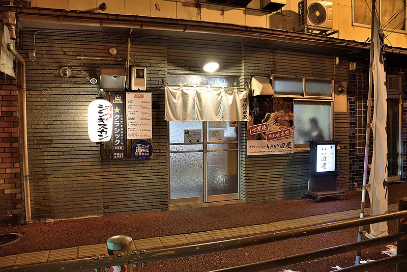 老舗が立ち並ぶ電車通り沿いの風景に、白い暖簾がなじむ「炭火ジンギスカン いい田屋」は、2017年の羊肉の日(4月29日)に開業。飯田太平店主が夫婦で切り盛りし、昭和の風情を感じるこぢんまりと清潔感ある店内は、地元の人も観光客も肩を寄せ合いほっとできる居心地の良さがある。