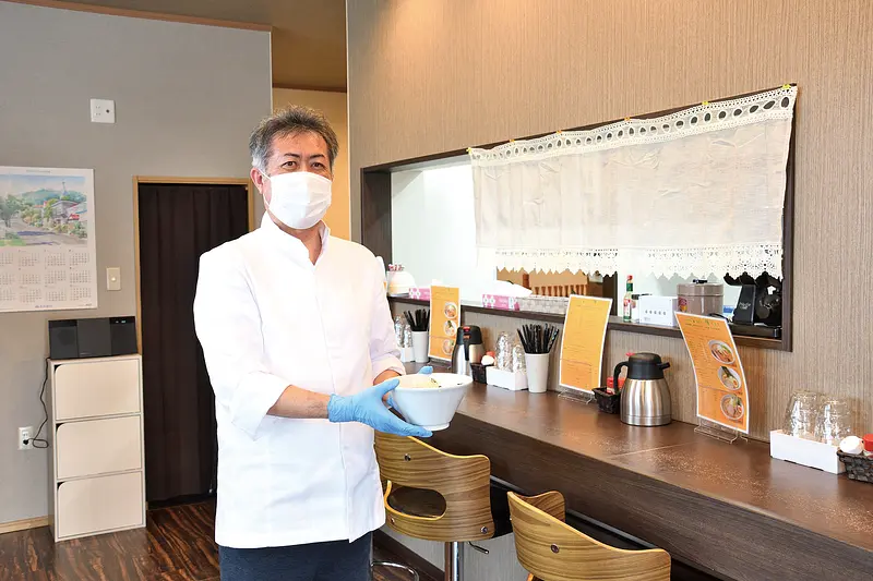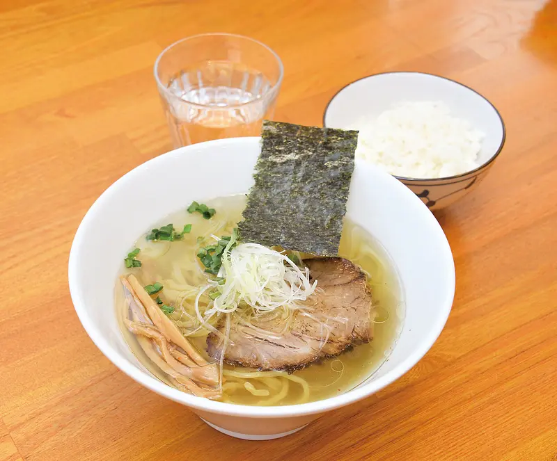 平日7~9時限定の「朝ら~セット」は、「淡麗しおorしょうゆ」にライスが付くお得なセット。4時間以上煮込むスープはあっさりしながらコクがあり、こんがり焼いた肩ロース肉にしっかり味の染みたチャーシューが絶妙なアクセントに。滋味深いスープはライスにかけて味わう人も多く、しつこさを感じさせずさっぱりした後味は朝の一杯に最適だ。