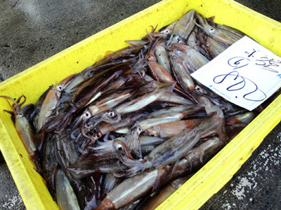 (函館市水産物地方卸売市場でセリにかけられる真いか)