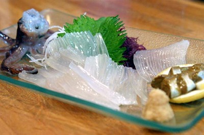 生け簀をもつ飲食店で提供するいかは、身だけでなく、ゴロ(肝臓)も一緒に出してくれることが多く、濃厚な旨みにびっくりするはず。また、足も皿に盛りつけてくれる店では、表面の色素が微妙に変化する様子がよくわかります。口に含むと吸盤が舌につく、いわゆる「踊り食い」を楽しめるのは、獲れたての新鮮な食材であることの証です。