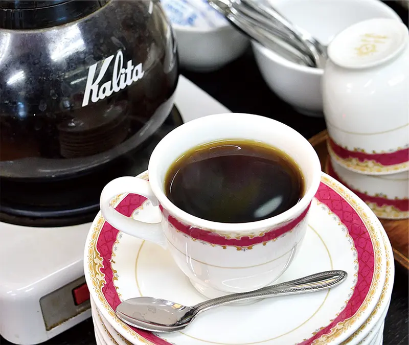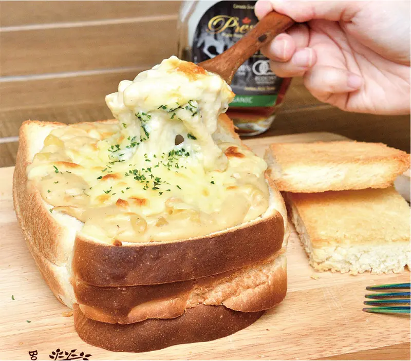 煮込みハンバーグや牛すじカレーなどの洋食メニューの中で、特に種類豊富なのがグラタン。作り置きはせず、注文を受けてから手作りする「パングラタン」は、マスターが好きだった今はなき老舗喫茶店の味を思い出し再現したという一品。スライス食パンを3枚重ねて中央をくり抜き、鶏肉やシメジとじっくり炒めたベシャメルソースをこぼれんばかりに注ぎ入れ、ミックスチーズをたっぷりかけてオーブンで約15分。カリッと焼けた風味豊かな食パンとバターや生クリームをふんだんに使う濃厚なマカロニグラタンの相性が抜群で、寒い季節にぴったりのごちそうだ。