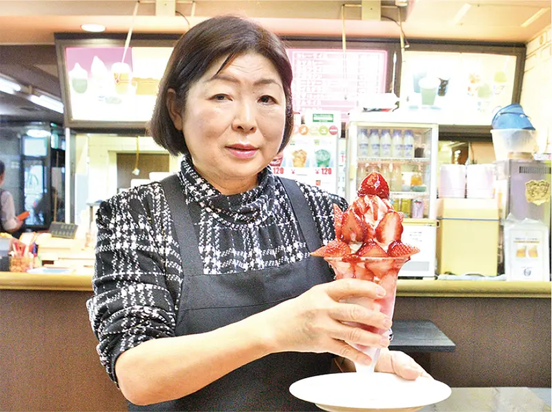 1987年に畑中くみさん夫妻が創業し、花園温泉に併設して営業。かつての修業先で函館市本町にあった「スイートパーラートップス」の味をそのまま再現したフードメニュー、旬のフルーツやイベントにちなんだパフェが、子供から年配客まで広く愛されている。