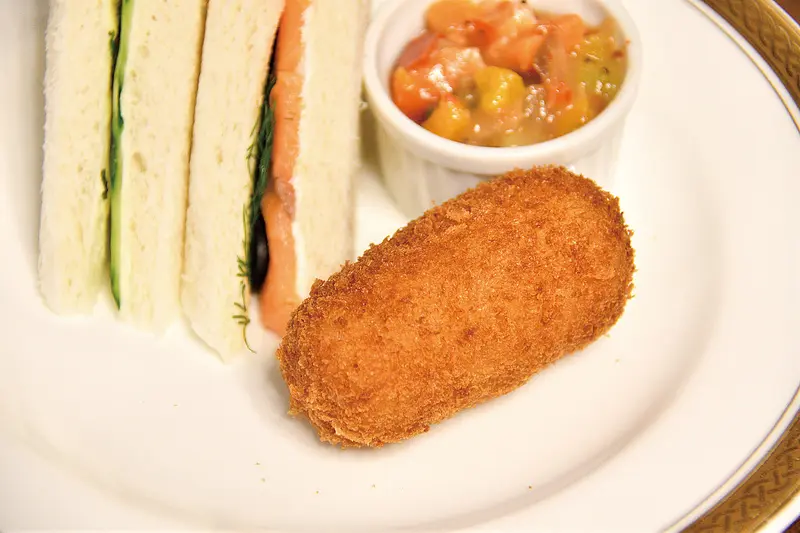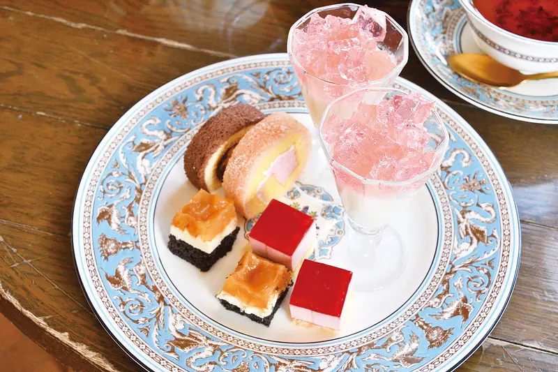 洋食と洋菓子の老舗として新たな王道を目指したアフタヌーンティーセットは、レストランメニューの真髄たるベニズワイガニのクリームコロッケや、コース料理のデザートとして発展した伝統のアップルパイを盛り込む特別製。このセットのために開発したスコーンはさっくり軽い口当たりで、手作りクロテッドクリームと道産ハスカップジャムを乗せるとさらに至福の味わいに。「あまおう」のイチゴパウダーが甘酸っぱく食べ進むほど風味が変わるルビーティラミスなど、五島軒の技が詰まった品々を、季節の紅茶や水出しコーヒーと心ゆくまで堪能したい。