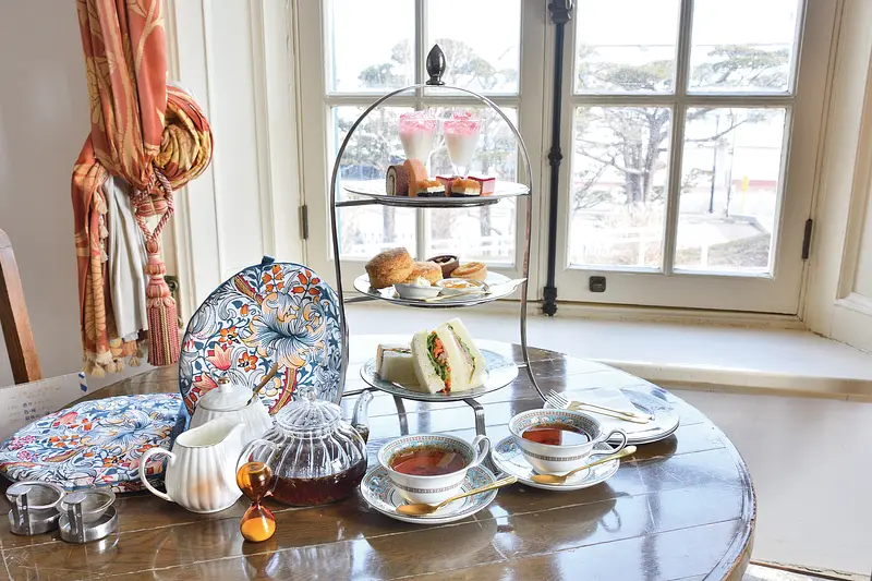1934年まで実際に使われていた函館市旧イギリス領事館内のティールーム。2023年、併設のスーベニアショップと共にリニューアルし、歴史ある空間はそのままにメニューを一新。使用する茶器を英国王室御用達の陶磁器ブランド・ウェッジウッドに統一し、ポットサービスの紅茶は、市内の紅茶専門店「ルフナ」から仕入れる5種類の茶葉に厳選。中でも年3回収穫期があるダージリンは、春のファーストフラッシュをはじめ、季節ごとにフレッシュな茶葉を提供し、特別なティータイムを演出する。