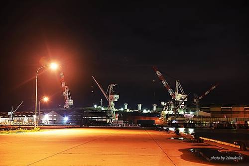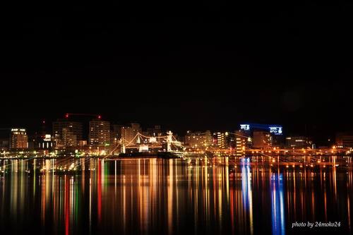 海王丸と函館ドック...海面に映る灯りが綺麗な夜でした