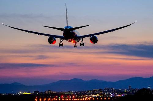 生憎の雨降りでしたが最終便の飛び立つ時刻は誘導灯&漁火のダブル夜景を楽しめます♬