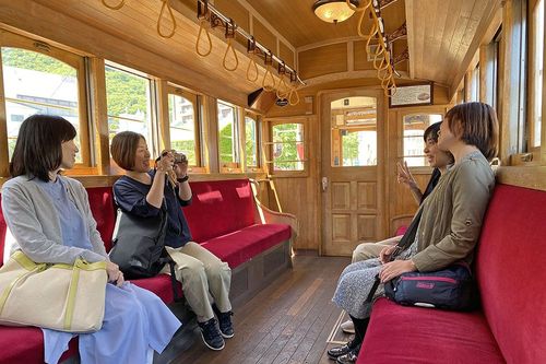 例年4月~10月の土日祝限定で定期運行されます。街を走る姿も絵になりますが、普通運賃で乗車もできるので、ぜひ車内のレトロな雰囲気を楽しみましょう。
