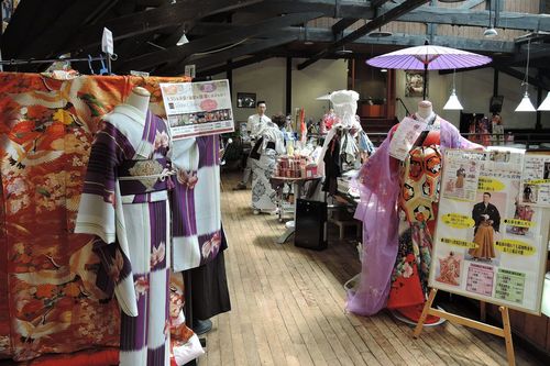 ベイエリアのはこだて明治館は、1911(明治44)年築の旧函館郵便局舎をリノベーションしたショッピングモール。その2階に、バラエティにとんだ衣装がレンタルできる和洋モダン貸衣裳館があります。服の上から着付けを行うため、支度の所要時間は約10分。