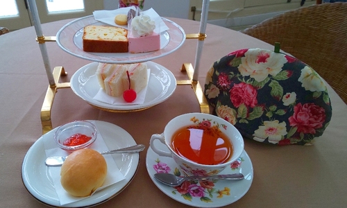こちらでぜひ味わいたいアフタヌーンティーセット。焼きたてスコーンはサクサク! たっぷり入ったティーポットの紅茶の飲みごろは、砂時計が教えてくれます。