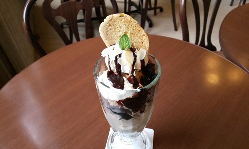 たくさんの種類があるボリューム満点のパフェは、男女問わず大人気。パフェ目当てのお客さまが後を絶ちません。こちらは、クルミとメープルシロップのパフェ。