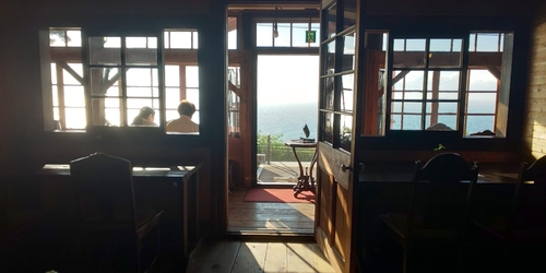 店内は木を基調としたシンプルなインテリアで、ノスタルジックな雰囲気。海の見える席でぼーっと外を眺めていると、肩の力が抜けて気持ちが軽くなるのを感じます。