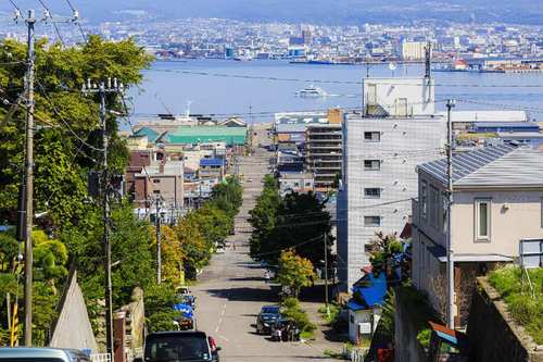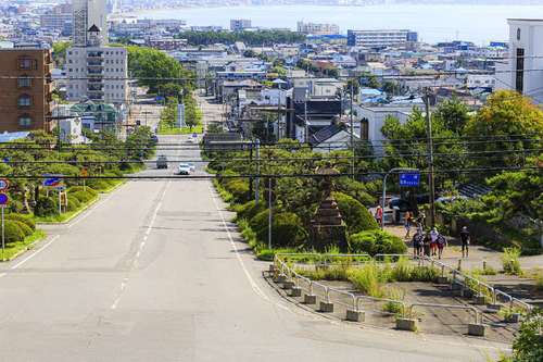 19本の中で一番北側に位置する坂で、坂下に向かって左手には家々の間から函館湾が望めます。山並に沈む夕陽が見られる絶好のスポット。坂に沿って寺院や墓所が立ち並び、盆や彼岸には多くの人で賑わいをみせます。