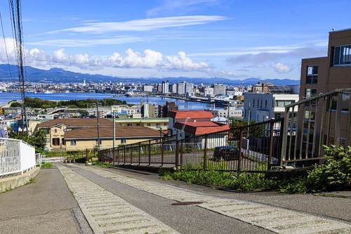 隣のあさり坂と同様に、民家が建ち並ぶ閑静な坂道。19の坂の中で南の端となるこの2つは、港側の坂や観光で賑わう地区とは少し違った風情。坂の途中にはお寺や学校、上りきって左手には函館公園があり、歴史や文化が生きています。