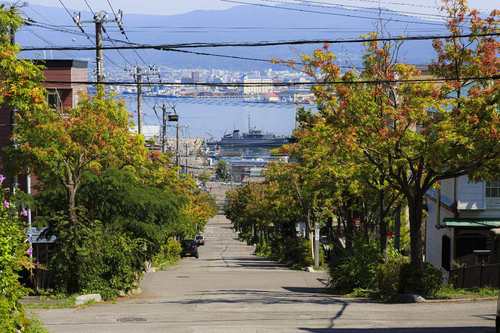 19ある函館の坂のなかで一、二を争う延長を誇り、まっすぐに港まで伸びて、見通しのよさもピカイチ。坂の頂上、山上大神宮脇の船見公園からは、函館の港や街が一望できます。また一番下のふ頭からも、頂上まですっきりと見渡せます。