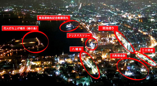◆はこだてイルミネーションで、坂や教会が光の回廊に
