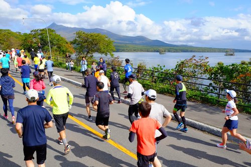 人気イベント「北海道大沼グレートラン・ウォーク」が行われ、大勢のランナーや応援の皆さんで賑わいました。ゴールでは今が旬のリンゴなど地元特産品のふるまいも。