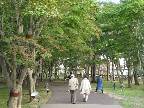 函館でも指折りの紅葉の名所、見晴公園(香雪園)。日当たりのいいところから少しずつ紅葉が始まっています。園内をゆっくりと散策したり、どんぐりを拾ったりするかたも多くいらっしゃいました。