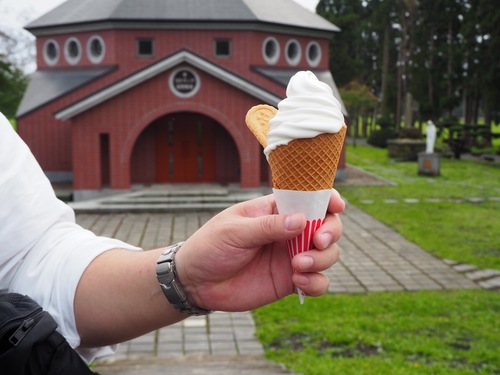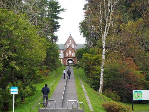 函館のお隣・北斗市にある男子修道院までは、函館駅からドライブで40分くらい。修道院に続く並木や山麓のルルドのツタが秋色になっていました。売店で人気のソフトクリームは11月11日までの販売。