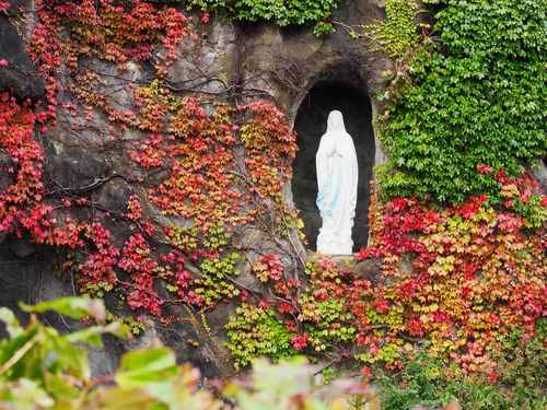 裏手の山麓にある、聖母マリア像を祀るルルドの洞窟