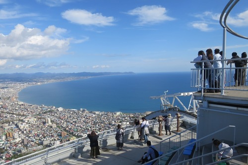 お昼すぎの函館山展望台では、「気持ちいい~」「昼間もいいね!」と歓声が上がっていました。明日からロープウェイは運休期間になりますが、展望台は通常営業しています。アクセス情報はこちら。