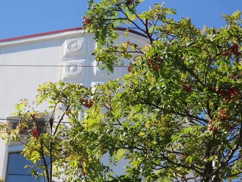 台風が過ぎ去り、吹き返しの風が強い1日でした。ベイエリアの「はこだて明治館」では日当たりのいい所のツタが赤く染まり始め、秋らしさ満喫。