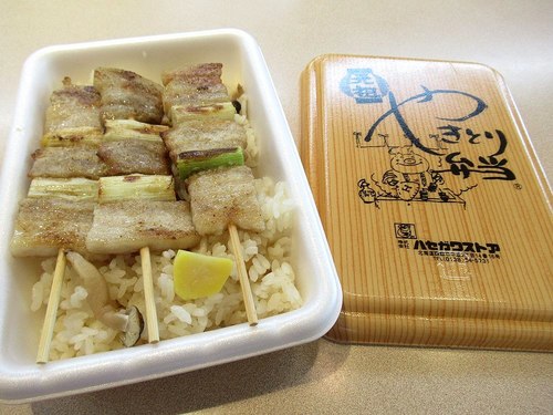 函館っ子のソウルフード、ハセガワストアの「やきとり弁当」。月替わりの限定弁当、10月は秋の味覚「栗ごはん」が登場! やきとり(豚串)との相性もバッチリです。ベイエリア店にはイートインスペースがあり、熱々のやきとり弁当が店内で味わえますよ。