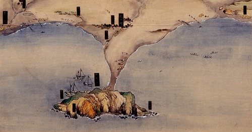 (東蝦夷地屏風/18世紀末の函館から根室付近までの沿岸図の一部 *1)